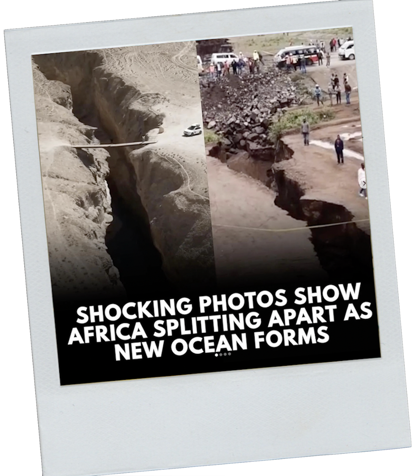 I got hit with this image a few days ago and some of you sent it to me too. Itās apparently proof that Africa is splitting.