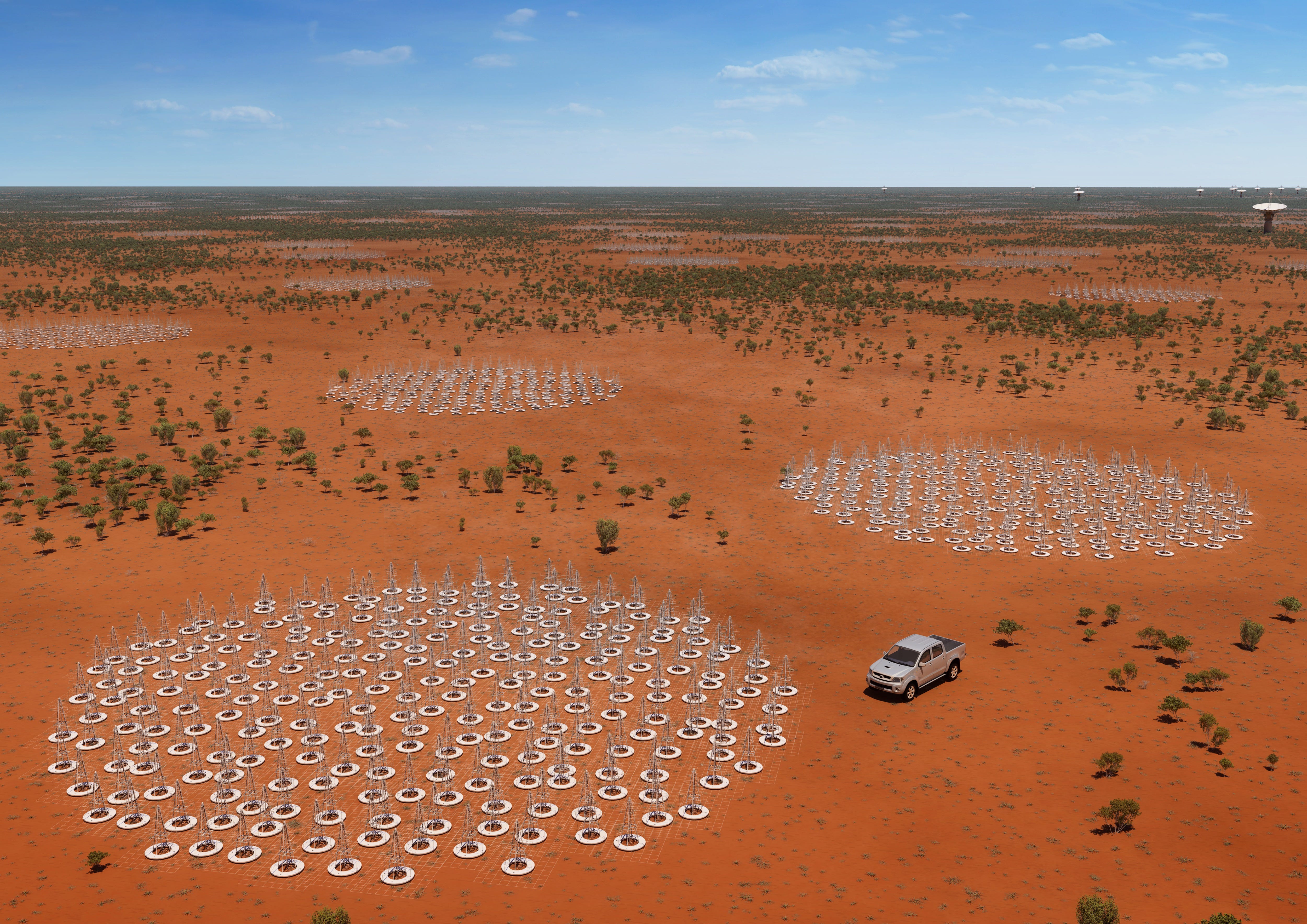 SKA: Square Kilometer Array // Size: 5,000 meters, 192 dishes // Location: Australia & South Africa: The SKA is still under construction in both South Africa and Australia. When complete, it will be the strongest telescope in the world with the largest collecting area (which some might define as ālargest,ā though it doesnāt cover the biggest area on the ground). It will have a total observation area of 1 square kilometer (1 million meters), be 10,000 times faster than any other radio telescope, and 50 times more sensitive. South Africa will hold the dish array portion while Australia will hold the antenna array portion, and its headquarters will be in the UK. It is expected to start observations next year and be fully complete by the end of the decade
